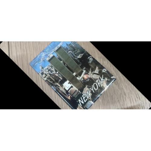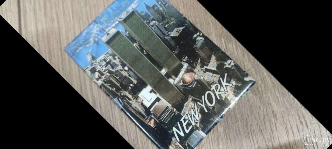 Это магнит с изображением Всемирного торгового центра (башни-близнецы) в Нью-Йорке.
