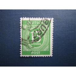Марка Германия Союзническая оккупационная зона 1946 стандарт 15 пф зелёная гаш