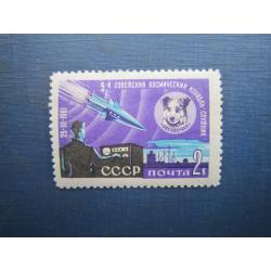 Марка СРСР 1961 космос 5-й спутнік фауна собака Зірочка MNH