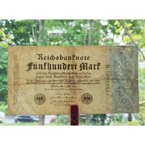 наявний500 марок 1922 року, Німеччина, стан банкноти по світлинах.