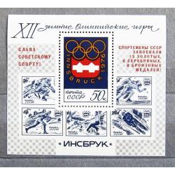 СпортМарки СССР 1976 года. Победа советских спортсменов на XII зимних Олимпийских играх. MNH
