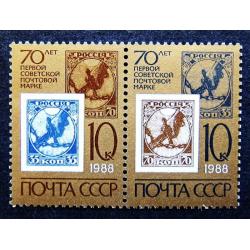 Марки на маркахМарки СССР 1988 года. 70 лет первой советской почтовой марке. MNH