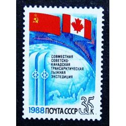 Історія та географіяМарки СССР 1988 года. Совместная советско - канадская трансарктическая лыжная экспедиция. MNH