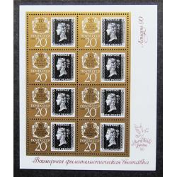 Марки на маркахМарки СССР 1990 года. 150 лет первой в мире почтовой марке. Лист. MNH