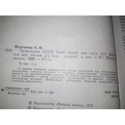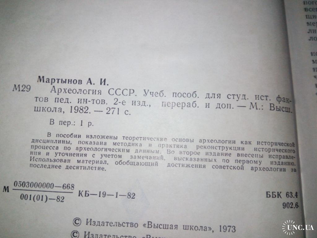 Мартынов А. Археология СССР. М.: Высшая школа, 1982. - 270 с..