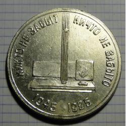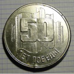 Медаль настольная 50 лет Победе. Диаметр 6,5 см. Алюминий.