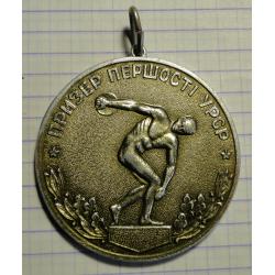 1981-2000Медаль «Призер первенства УССР» (ПРИЗЕР ПЕРШОСТІ УРСР). Диаметр 4,5 см.