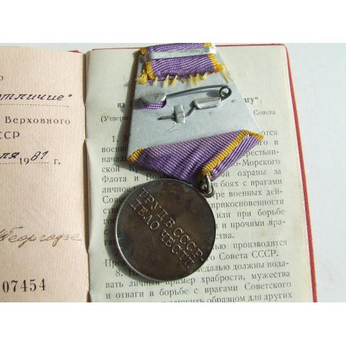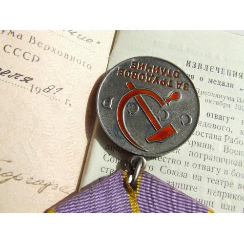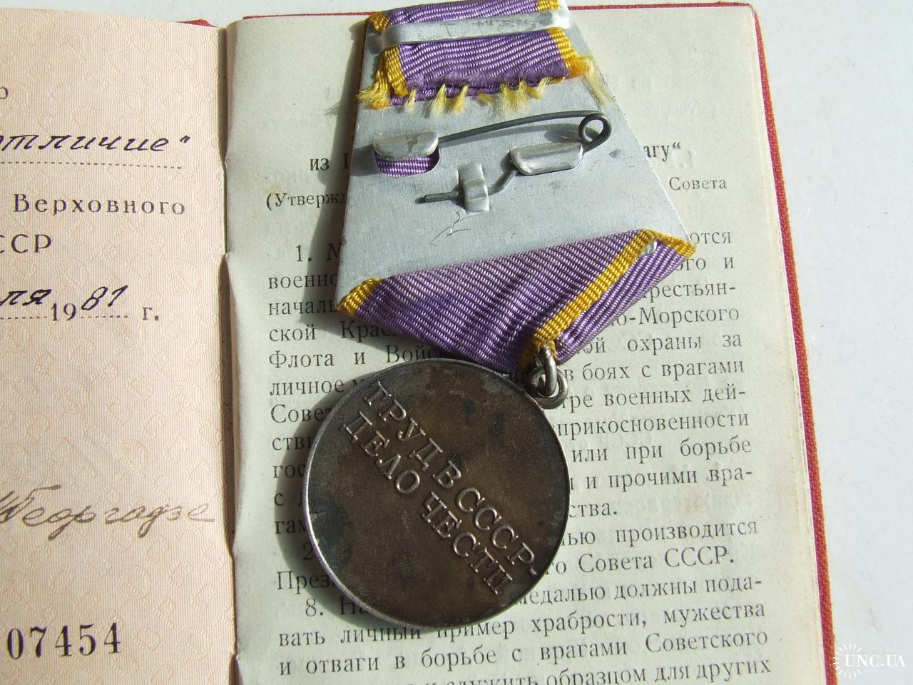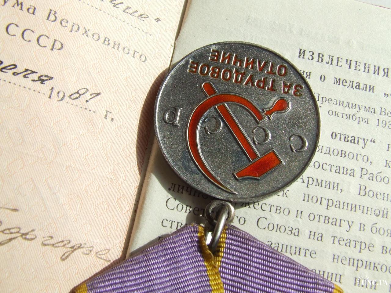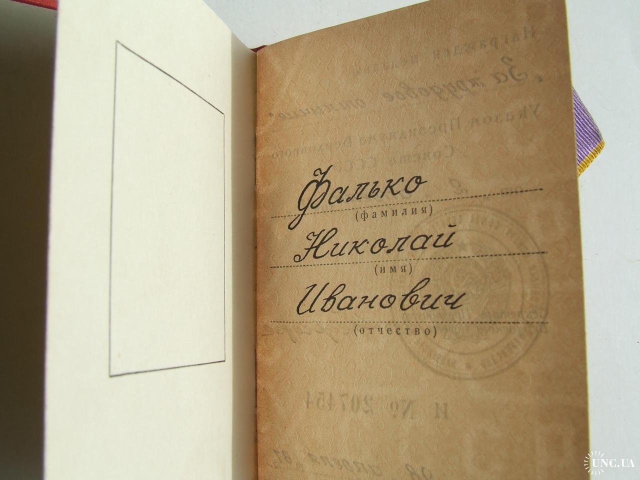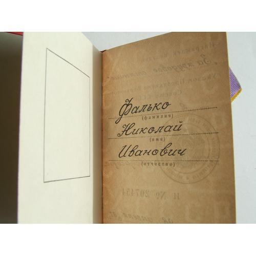 Медаль трудовое отличие награждения 1981 гг. на Фалько Н. И.
