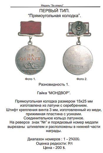 Приведены основные сведения о типах, разновидностях и вариантах медалей "За отвагу", "За боевые заслуги".