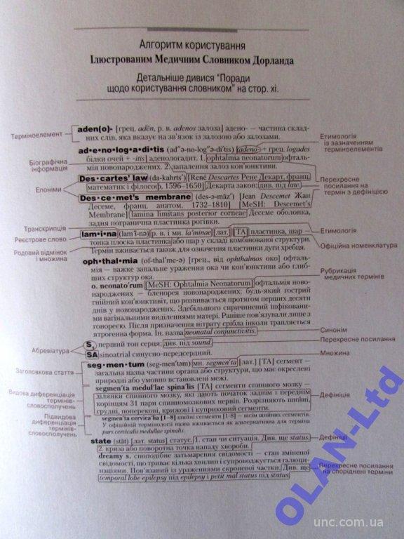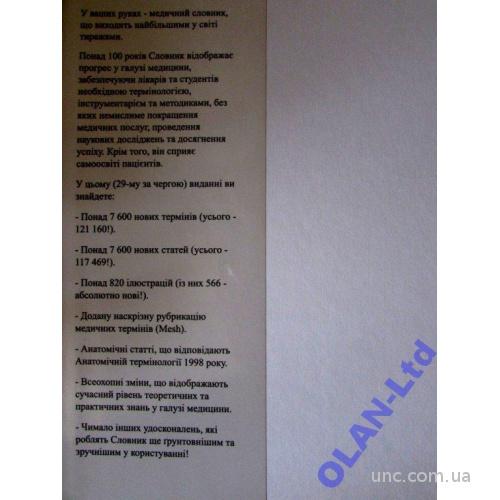 У двох величезних фоліантах даного україномовного перекладу 29-го американського видання легендарного « Словника Дорланда » поміщено: