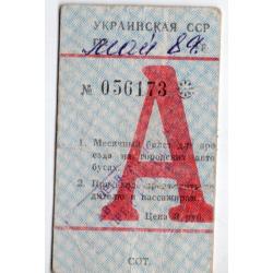месячный проездной городской транспорт Автобус май 1989 УССР