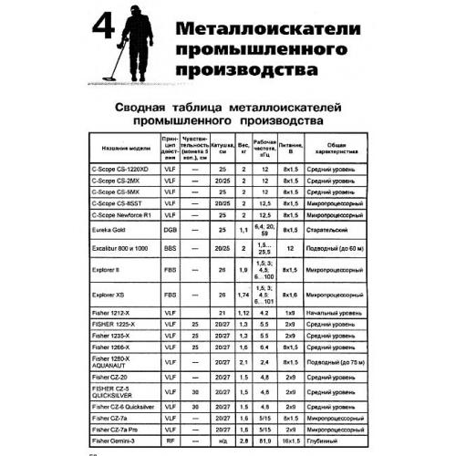 В книге приводятся 15-ть схем для самостоятельной сборки радиолюбителями металлоискателей и искателей скрытой проводки. Описываются также 5-ть схем металлоискателей для самостоятельного изготовления из готовых наборов. Кроме того, приведены описания и характеристики 87-ми промышленных металлоискателей, в том числе производства ведущих западных фирм MINELAB, WHITE'S, TESORO, GARRETT, C-SCOPE, FISHER.