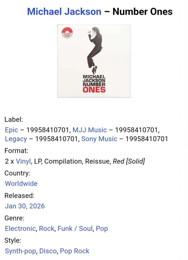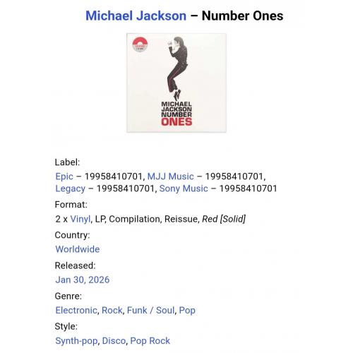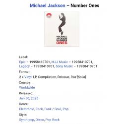 Вінілові платівки. Офіційна збірка найкращих хітів за всю дискографію, яка вперше була випущена в 2003-му році, легендарного, Американського короля поп-музики, покійного вже, Майкла Джозефа Джексона (Number One) 1971-2001. Випуск фірми (Epic / MJJ Music / Legacy / Sony Music) Worldwide, 2026-ий рік. Оригінальне, всесвітнє видання з двох платівок (2LP). Кольорові вініли (Coloured Vinyl). Лімітований тираж (Limited Edition). Розворотний конверт (Gatefold). Внутрішні вставки (OIS). Видання нове, запаковане. Категорія S/S. Відправка по Україні службами доставки: Нова Пошта, Укр Пошта, Делівері. Також відправляємо посилки за кордон по цілому світу.