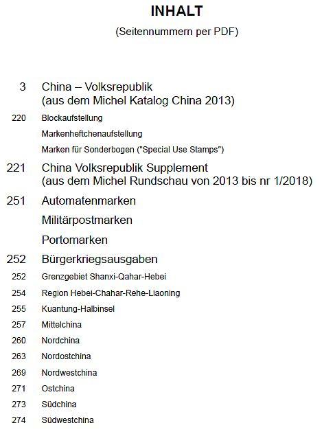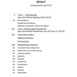 Составление из каталога Michel China 2013 и новости из Мichel Rundschau до номера 1/2018.