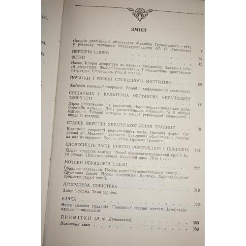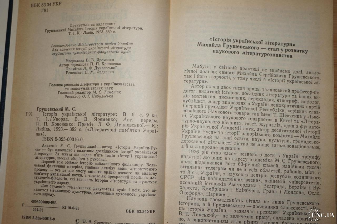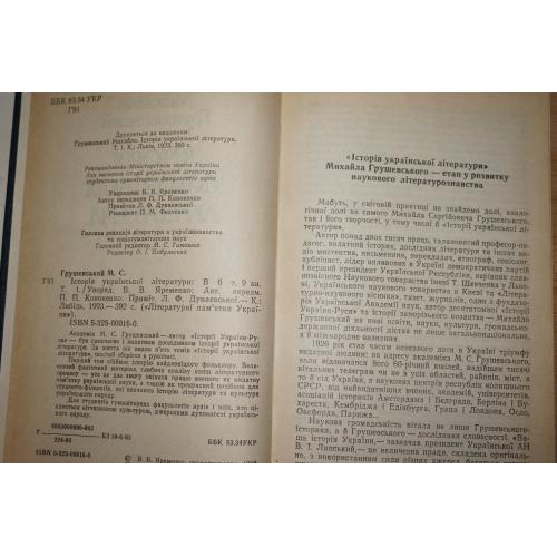 Ціна за один том. Продається окремими томами. Академік М.С. Грушевський - автор `Історії України-Руси` - був одночасно і видатним дослідником історії української літератури. За життя він видав пять томів `Історії української літератури`, шостий зберігся в рукописі. Перший том обіймає історію найдавнішого фольклору. Величезний фактичний матеріал, глибина аналізу явищ літературного процесу - усе це дає змогу оцінити працю вченого як видатну памятку української науки, а також як прекрасний посібник для студентів-філологів, які вивчають історію літератури та культури українського народу. Для студентів гуманітарних факультетів вузів і всіх, хто цікавиться вітчизняною культурою, джерелами духовності українського народу. «Зміст» - дивись фото. Вага томів 375, 280, 295 гр.