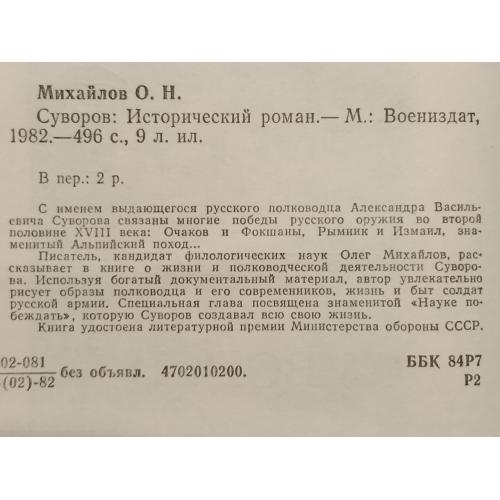 Михайлов. Суворов. Воениздат. 1982 год. Отличное состояние