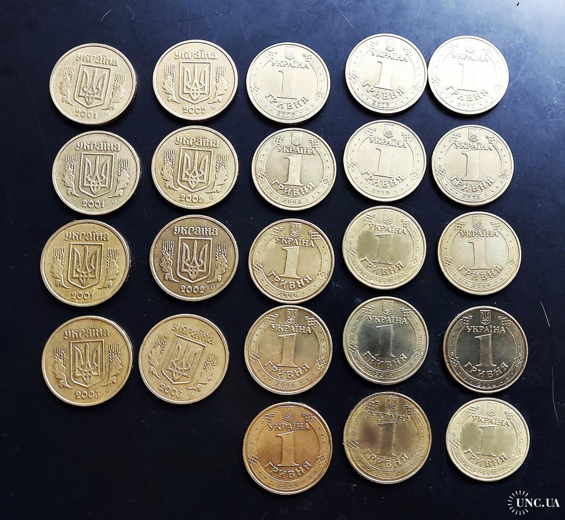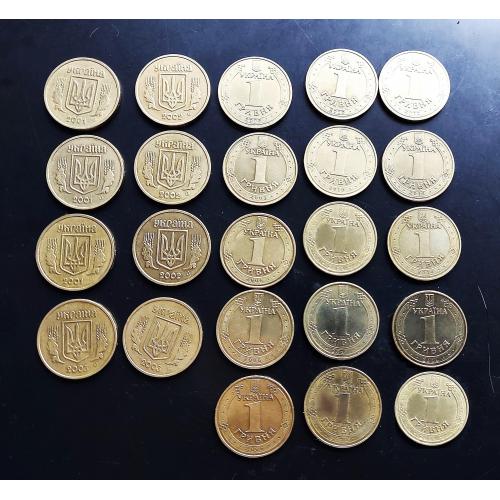 Україна 1 гривня, 23 шт., без повторів!