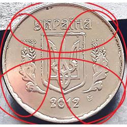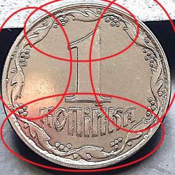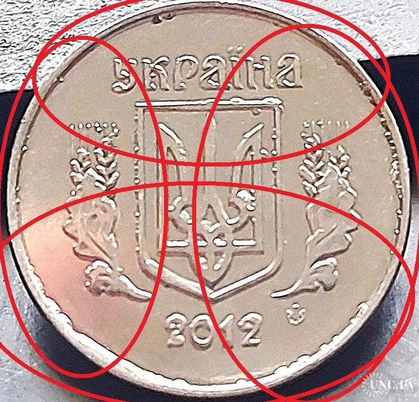 Україна 1 копійка 2012 р., 1ВА, БРАК!, викришка штампа