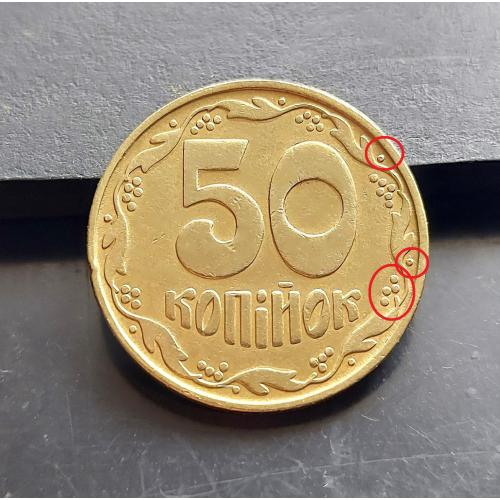 MN Україна 50 копійок 1992 р., 1БАм, чотири ягоди, дірочки _2