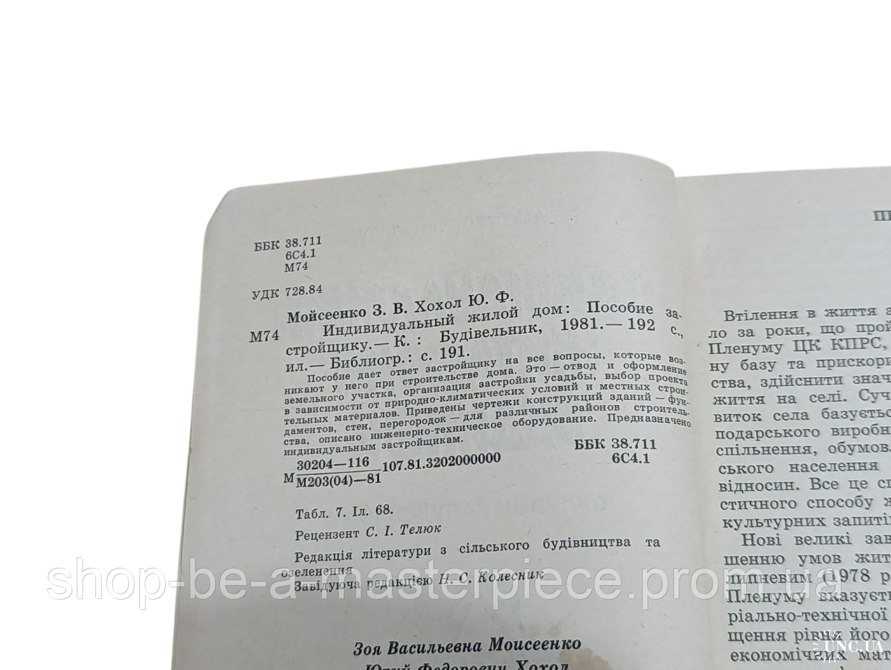 Моисеенко З. В., Хохол Ю. Ф., Индивидуальный жилой дом: Пособие застройщику 1981 мягкая обложка. порыв обложки..присутствуют пятна и штамп – К.: Строитель, 1981. – 192с., Пособие дает ответ застройщику на все вопросы, возникающие у него при строительстве дома. Это – отвод и оформление земельного участка, организация строительства усадьбы, выбор проекта в зависимости от природно-климатических условий и местных строительных материалов. Приведены чертежи конструкций сооружений – фундаментов, стен, перегородок – для разных районов строительства, описано инженерно-техническое оборудование. Назначен индивидуальным застройщикам., отсканирован и составлен владельцем экземпляра для общественного ознакомления.Відповіді продавця на ваші питання