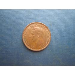 Монета 1/4 пенни фартинг Великобритания 1943 фауна птица