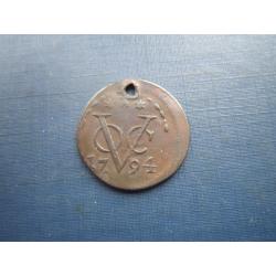 Монета 1 дуіт Нідерландська Ост-Індія 1794 рідкісна з отвором