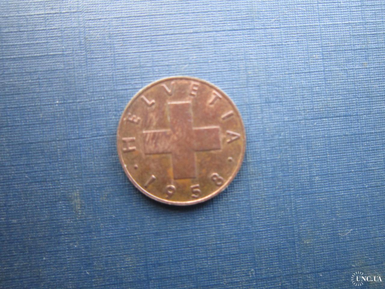 Монета 1 раппен Швейцарія 1958