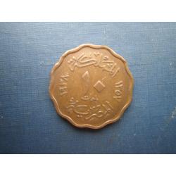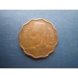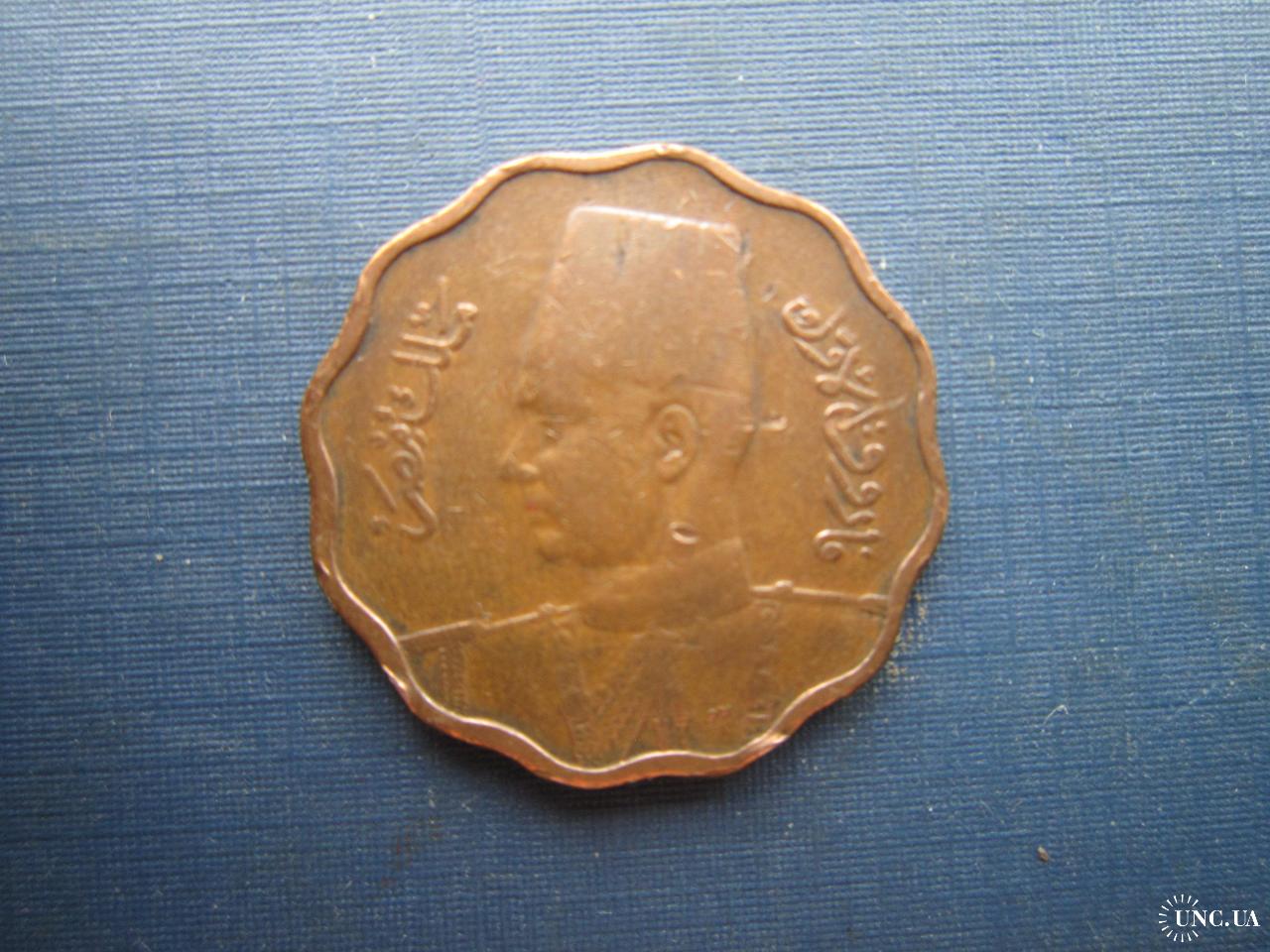 Монета 10 миллим Египет 1938 бронза волнистая Фарук I