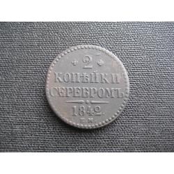 №2334. Металл - медь. Оригинальная монета - 2 копейки серебром 1842 ЕМ царская Россия (правление - Николай I). Состояние прошу оценивать по фото. Диаметр-32мм. Пересылка по Украине - Новой почтой, Укрпочтой. Для киевлян возможность встречи и просмотра (воскр. метро Нивки). В РФ и Белоруссию не отправляю!