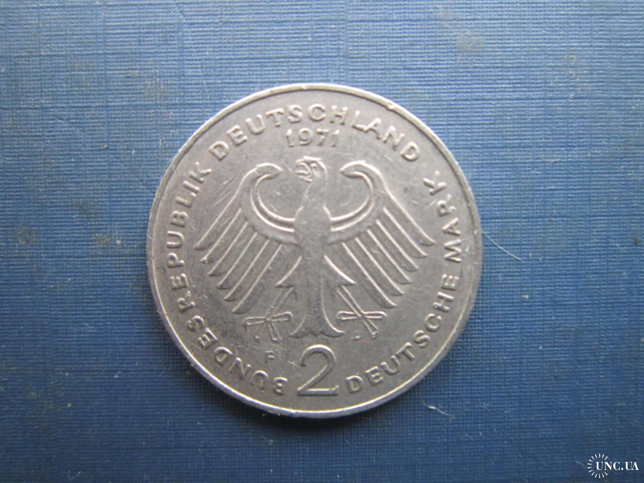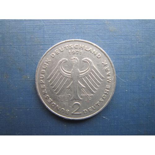 Монета 2 марки Німеччина ФРН 1971 F Теодор Хойс