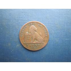 Монета 2 сантими Бельгія 1870 Belges фауна лев