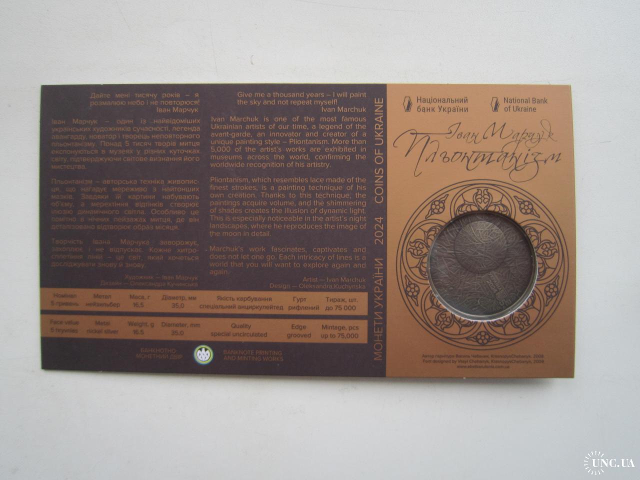 Монета 5 гривень НБУ Україна 2024 в буклеті Пльонтанізм Іван Марчук кольорова