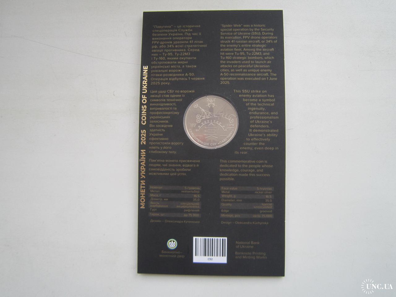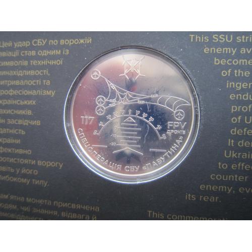 Монета 5 гривень НБУ Україна 2025 в буклеті Спецоперація Павутина