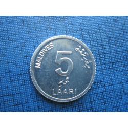 Монета 5 лаари Мальдивы Мальдивские острова 2012 фауна рыбы состояние