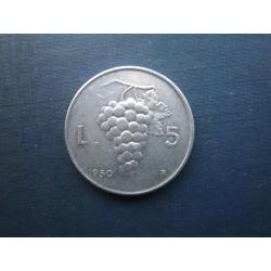 Монета 5 лір Італія 1950 виноград