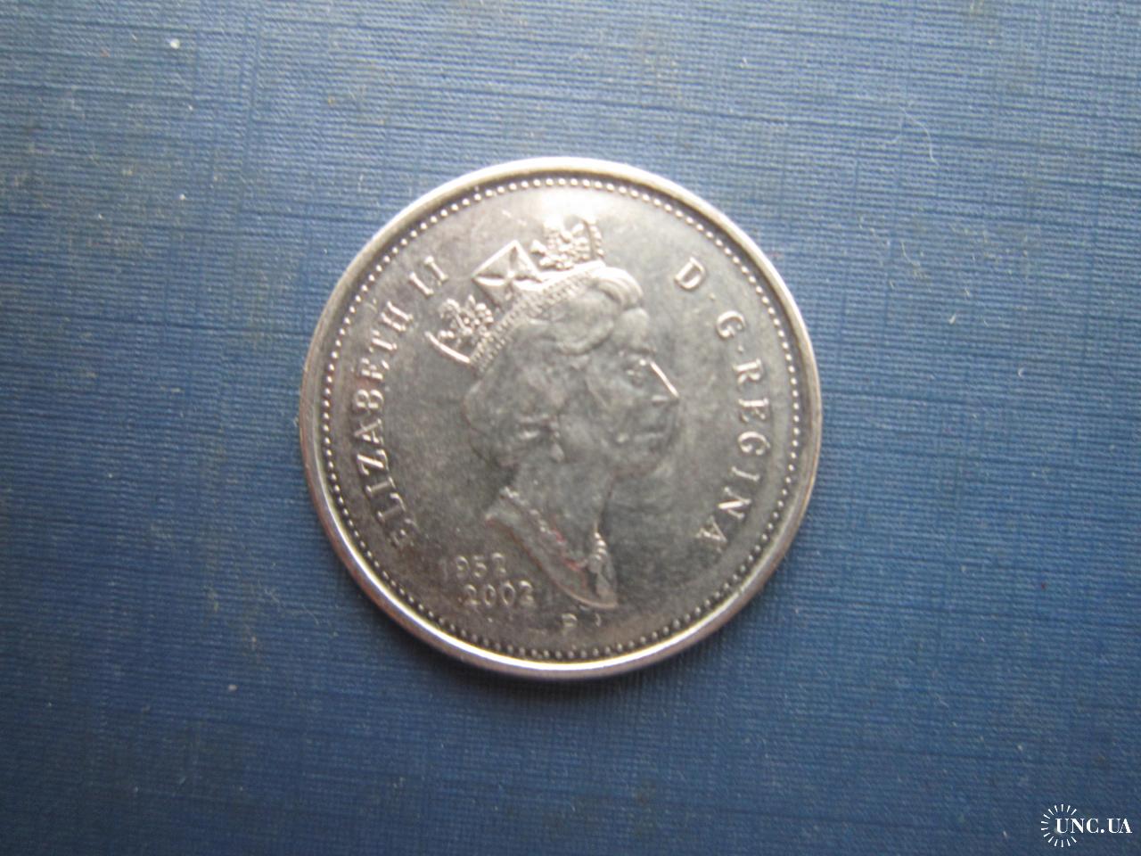 Монета квотер 25 центів Канада 2002 ювілей 50 років на троні Єлізавета II