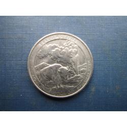 Монета квотер 25 центів США 2010 D 2-й парк Єллоустоун Вайомінг фауна бик бізон