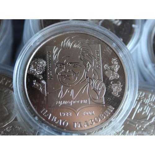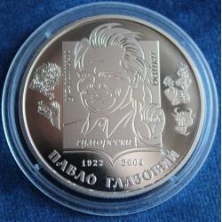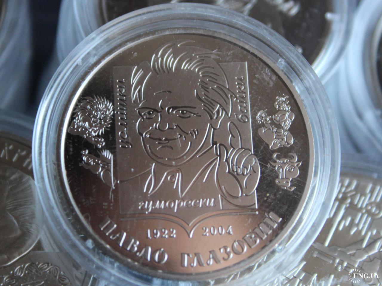 Памятная монета посвящена одному из самых популярных украинских поэтов-юмористов, заслуженному деятелю искусств Украины, лауреату премии имени Остапа Вишни (1988 год), первому лауреату премии имени Петра Сагайдачного (1996 год) – Павлу Прокоповичу Глазовому. Неисчерпаемыми источниками творчества юмориста являются сокровища живого языка, искрящиеся жемчужины народной мудрости. Юмор поэта-сатирика – дружелюбный, веселый; басням присущи остроумие и меткость; многие произведения имеют черты народного анекдота и придают хорошее настроение. Присущие писателю любовь к родной земле, своему народу, болезни за украинский язык, украинское искусство, донесенные до людей в юмористической форме, ободряют в самые сложные минуты жизни, а творчество – открытая страница веселого нрава украинского народа.