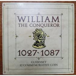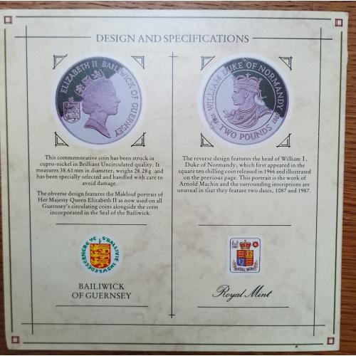 Памятная монета остров Гернси номиналом 2 фунта выпуска 1987 года. Монета посвящена 900-летию со дня смерти короля Вильгельма I Завоевателя. Оригинальная упаковка. Тираж монеты 18000 экземпляров.