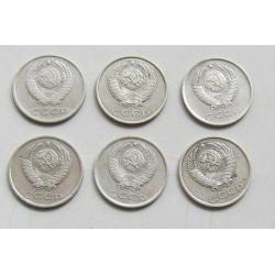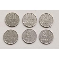Монета СССР 20 копеек, 1961, 1980-1988 годы, 6 шт.