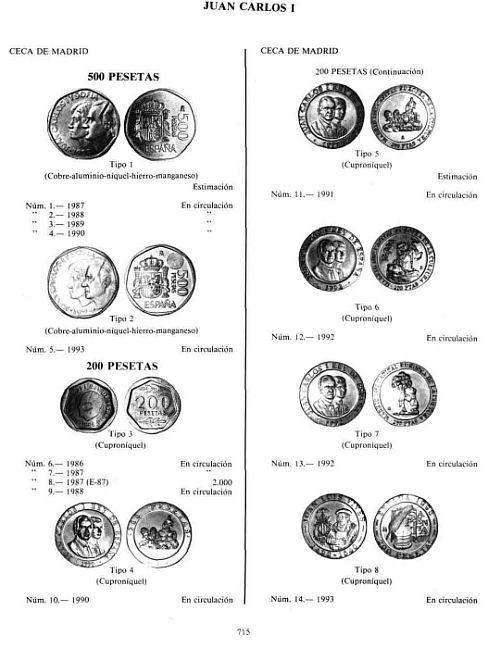 Популярный каталог испанских монет выпушенных с 1474 по 1994 годы. В каталоге описаны основные выпуски монет, дана их оценка. Каталог структурирован по правителям, начиная с Фернандо и Изабеллы и до Хуана Карлоса I.