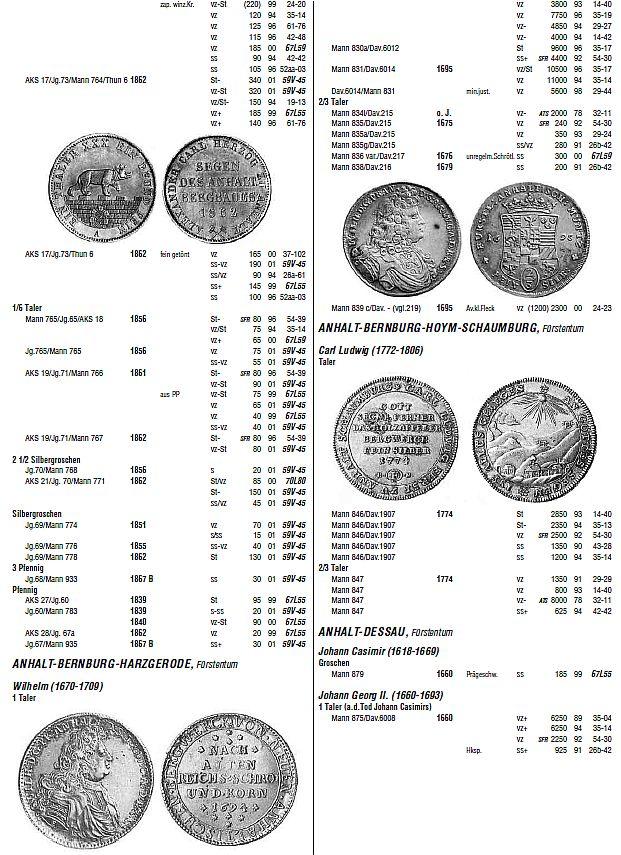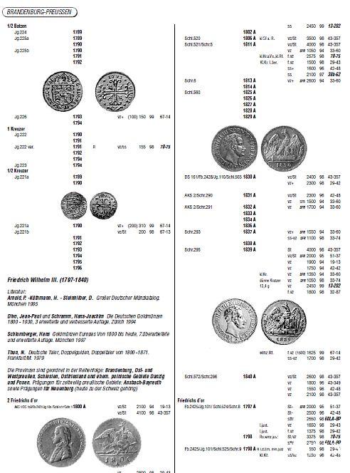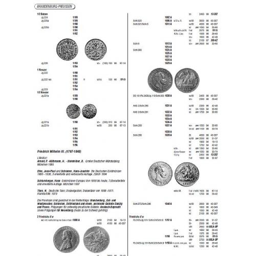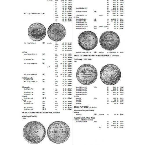 Результаты аукционов с 1990 до 2001. При составлении каталога анализировались результаты почти 100 аукционов с почти миллионом цен, в итоге книга включает 40.000 результатов с 6.000 фотографиями монет немецких земель с 800 по 1871 года.
