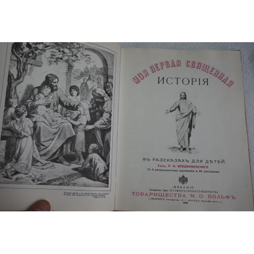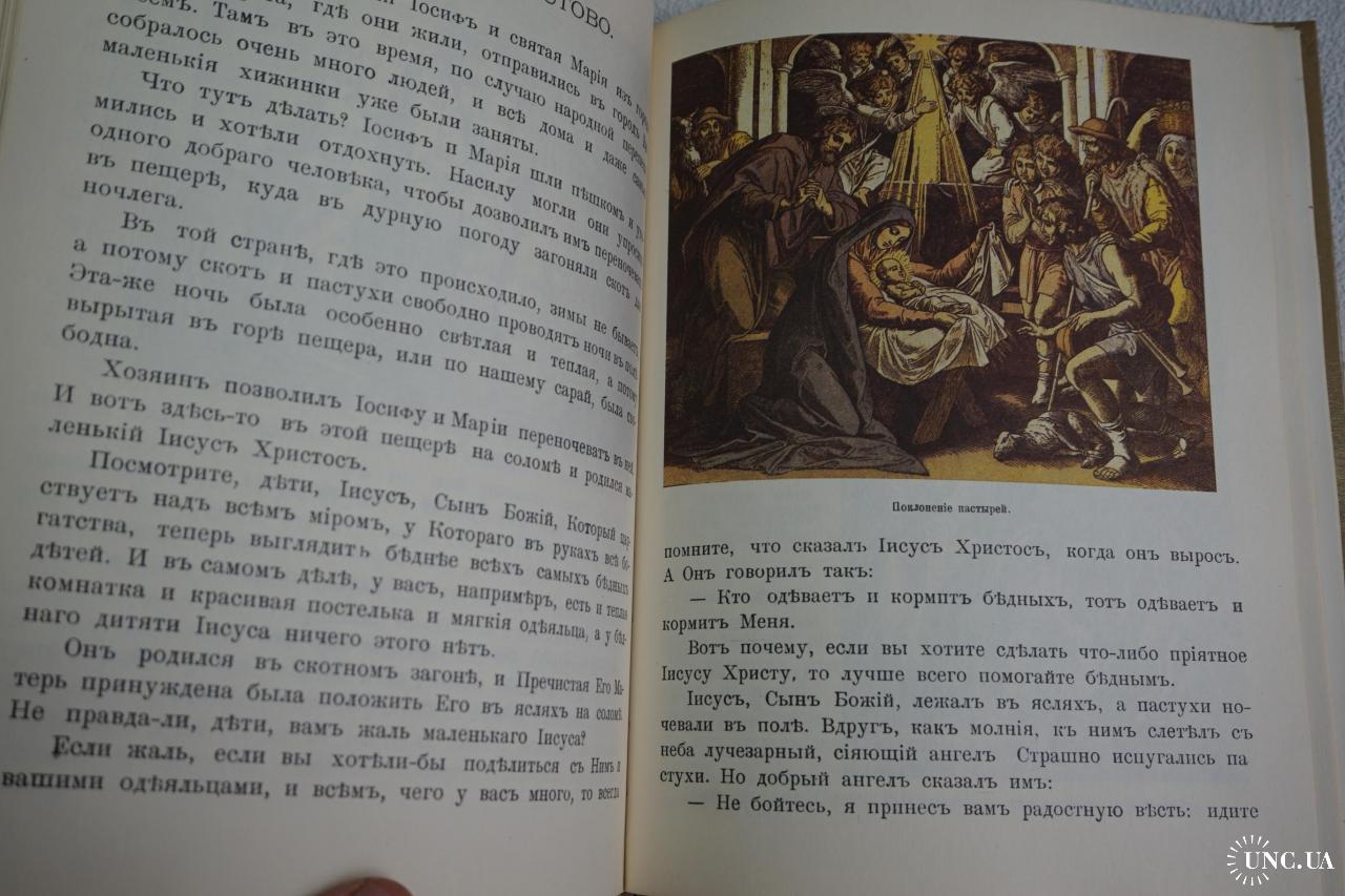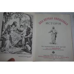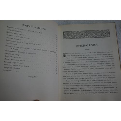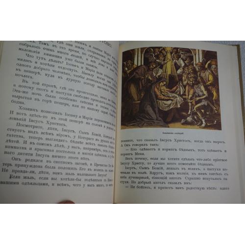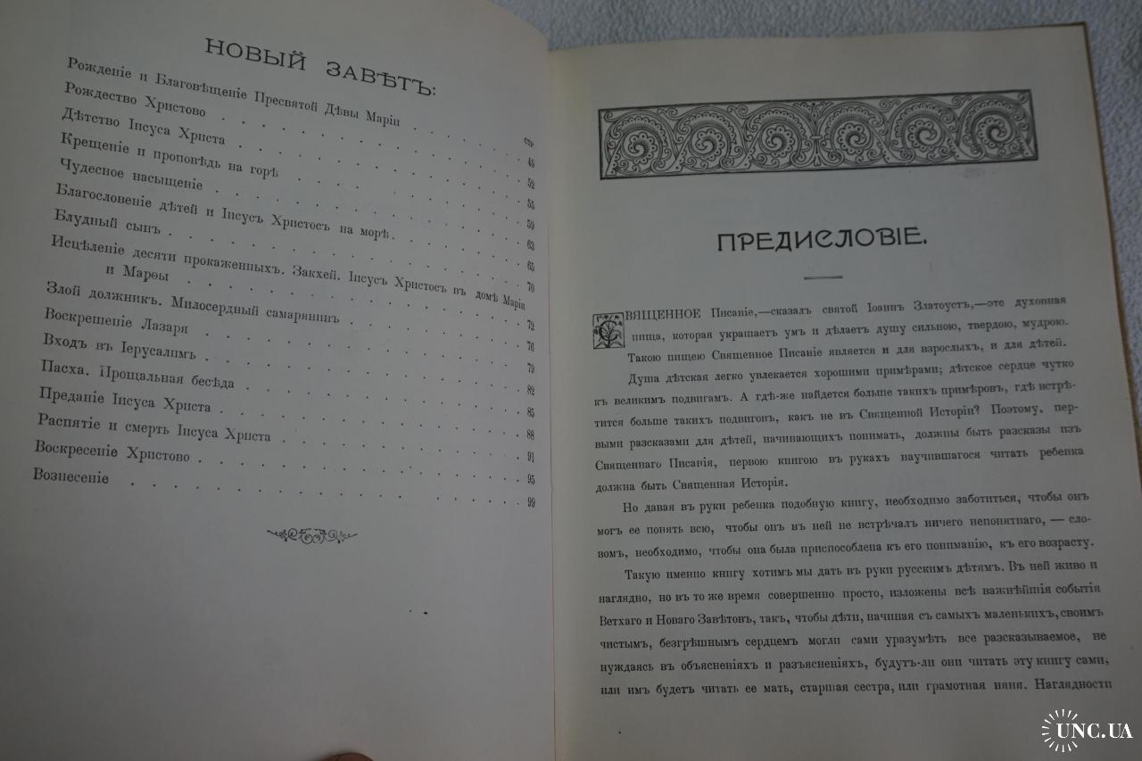 Таку саме книгу хочемо ми дати в руки російським дітям. У ній жваво та наочно, але водночас абсолютно просто, викладені всі найважливіші події Старий і Новій Нового Письмов, так, щоб діти, починаючи з найменших, своїм чистим, 58еним серцем могли самі зрозуміти все щічене, не потребуючи поясненнях і роз'ясненнях, чи вони будуть читати цю книгу самі, чи їм читатиме її мати, старша сестра чи грамотна няня. Наочікуваності у викладі відповідає й наочність нароково підібраних малюнків: доповнюючи розповідь і зображуючи події, що описуються, ці малюнки ще більше роз'яснять і зміцнять у дитячій душі все те, що буде ними прочитано.