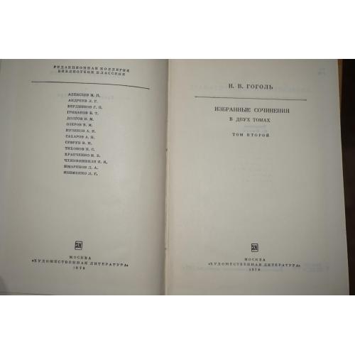 В первый том включены «Вечера на хуторе близ Диканьки», «Миргород», а также и избранные повести так называемого «петербургского» цикла (Невский проспект, Нос, Портрет, Шинель, Коляска, Записки сумашедшего), в этих произведениях со всей полнотой раскрылся блестящий сатирический талант великого русского реалиста. Во второй том вошли такие шедевры драматургии, как «Ревизор» и «Женитьба», а также поэма «Мертвые души» - вершина творчества писателя, - отразившая все многообразие русской жизни начала прошлого века. Герцен назвал ее «удивительной книгой», в которой есть «горький упрек современной Руси, но не безнадежный». Вес двутомника 1330 гр.