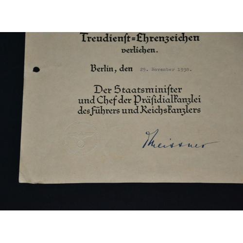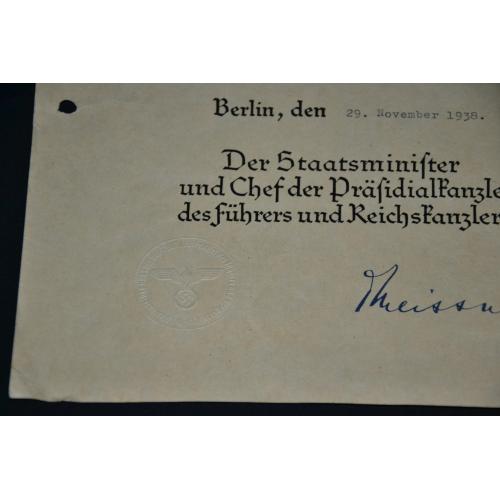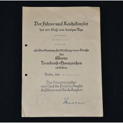 1939-1945Наградной лист «за верную службу 25 лет» 1939 г.