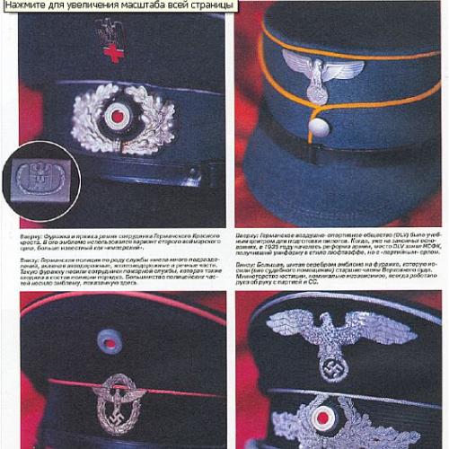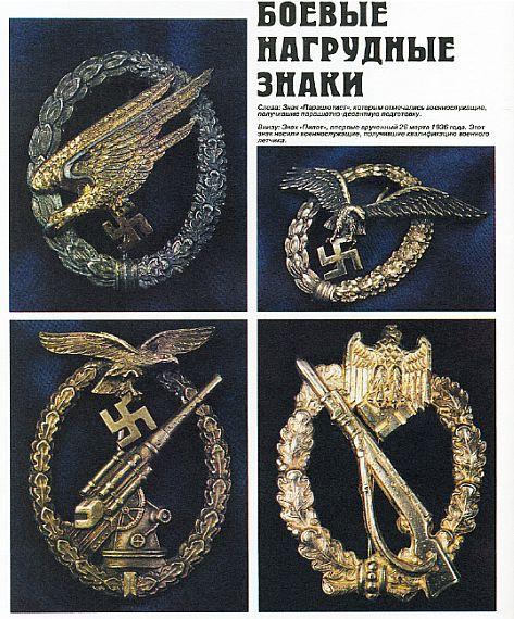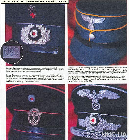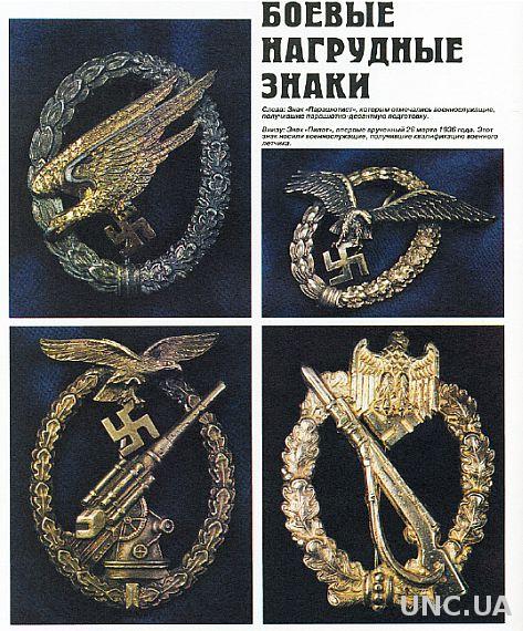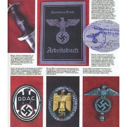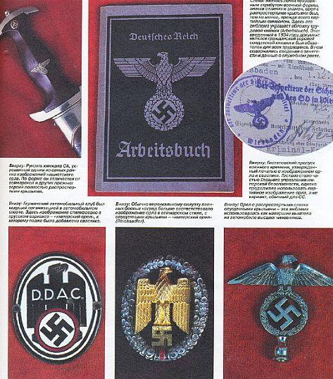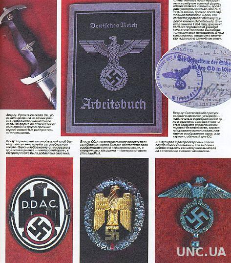 Последовательно представлена атрибутика таких подразделений: дивизия "Мертвая голова", штурмовые отряды СА, Гитлерюгенд, НСДАП, Люфтваффе, Лейб-гвардия фюрера, Черный корпус, полиция СС, НСКК, танковые войска, пехота, Имперская рабочая служба, Иностранные легионы и т.д. Отдельные разделы книги посвящены партийным наградам и документам, партийному пропагандистскому искусству, нацистским кинжалам, свастике, нацистскому кресту, службе безопасности, гражданской униформе. Количество иллюстраций не поддается подсчету и исчисляется сотнями