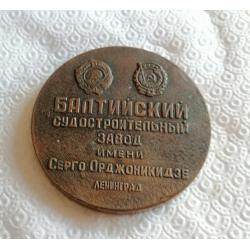 Настольная медаль. Балтийский судоремонтный завод имени Серго Ордженикидзе.