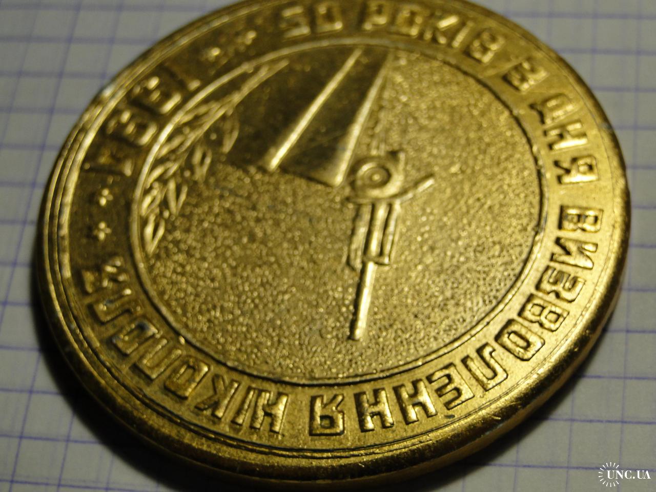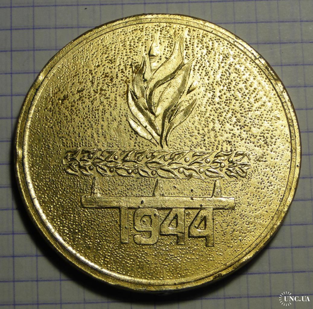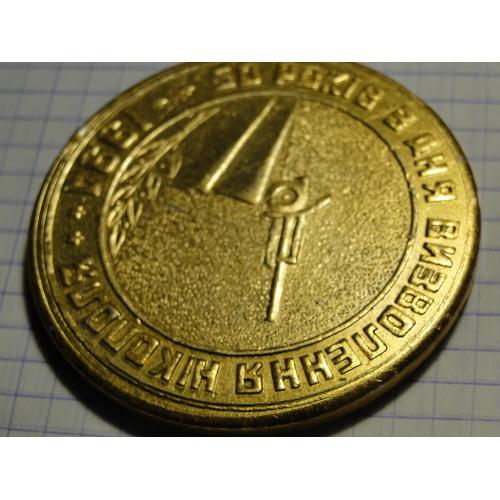 Настольная медаль 50-летие освобождения Никополя . Диаметр 6 см. Алюминий.