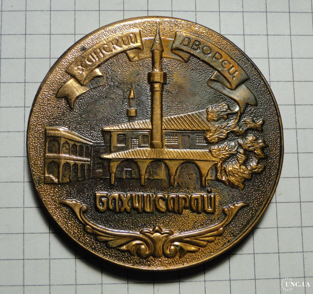 Настольная медаль Крым Бахчисарай.. Диаметр 5 см. Алюминий.