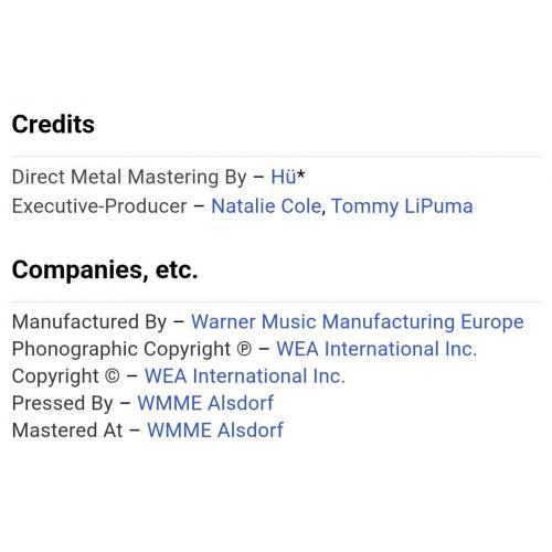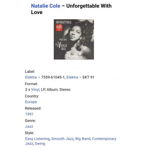 Вінілові платівки. Чотирнадцятий, в дискографії, студійний альбом, Американської виконавиці стилів ритм енд блюз, джаз, фанк, соул, дочки легендарного джаз-мена Нета Кінга Коула, покійної вже Наталі Марії Коул (Unforgettable: With Love) 1991. Випуск фірми (Elektra) Germany, 1991-ий рік. Оригінальне, першопресове, Німецьке видання з двох платівок (2LP). Лімітований тираж (Limited Edition). Стан платівок ЕХ+. Стан конверту ЕХ+. В комплекті внутрішні вставки. Відправка по Україні службами доставки: Нова Пошта, Укр Пошта, Делівері. Також відправляємо посилки за кордон по цілому світу.